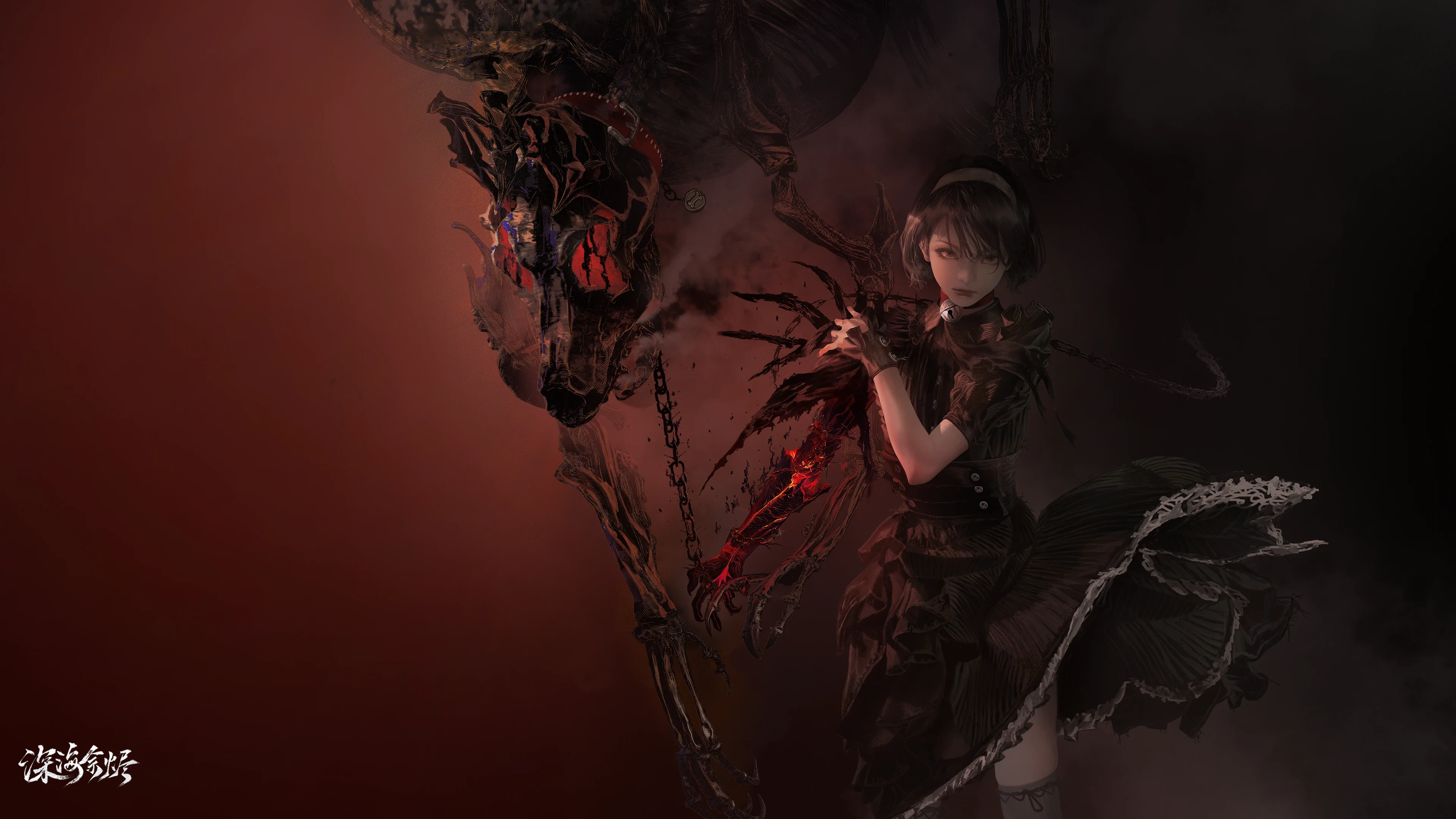 A menina parecia ter cerca de quinze ou dezesseis anos. Talvez por ser muito magra, sua aparência parecia mais jovem do que sua idade real. Um de seus braços, junto com a maior parte do ombro e parte do tronco, apresentava um estado claramente não humano. No final da estrutura óssea irregular e sinistra, estendia-se uma corrente preta. Na outra ponta da corrente, havia uma existência que os cultistas da aniquilação presentes conheciam muito bem: um Cão de Caça Abissal.