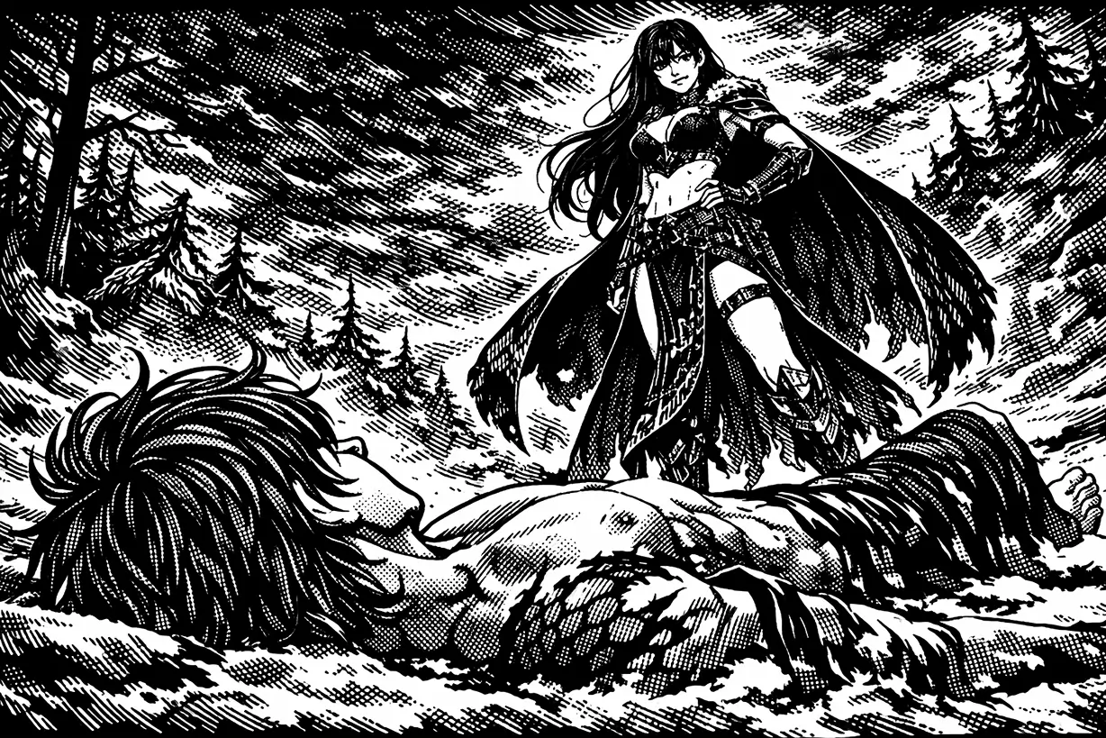 Não vieram correndo. Não vieram ajudar. Vieram do jeito que o predador chega quando a presa já cansou: no tempo deles. A neve afunda um pouco mais a cada passo. E o luar, por algum motivo, parece menos gentil. O estrago no chão ainda guarda calor. Mas o que chegou agora é outra coisa.