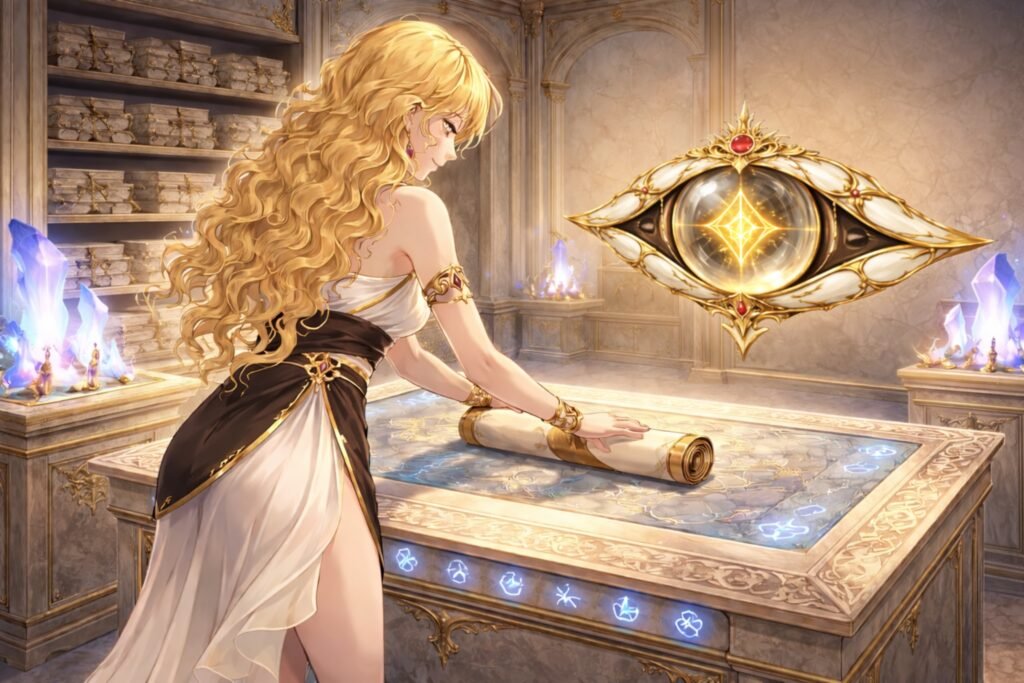 Ao meu lado, Lachesis flutua em silêncio. A runa onde deveria haver pupila gira devagar, como se estivesse folheando páginas que ninguém ousa tocar.