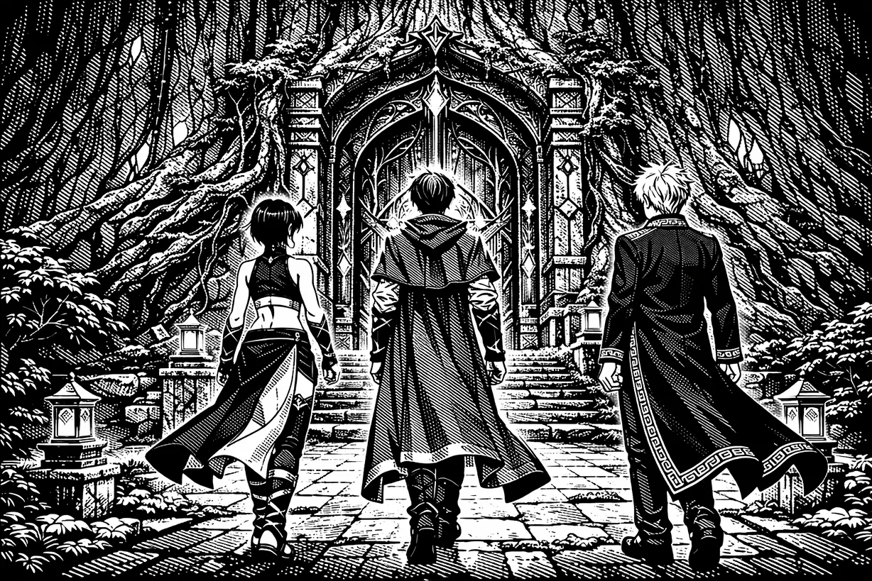 Chegam aos portões na base da árvore colossal. Grandes e robustos, Sundar toca a madeira, que reage à insígnia em seu peito. O portão se abre sem ranger, apenas com o estralar vivo da madeira cedendo.
