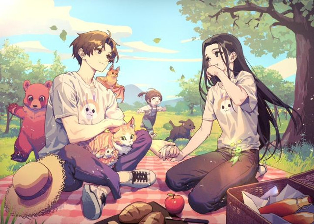 Peaspeas, animado, sentou-se no ombro de Sejun e cantou uma música improvisada.